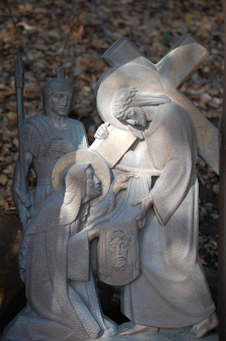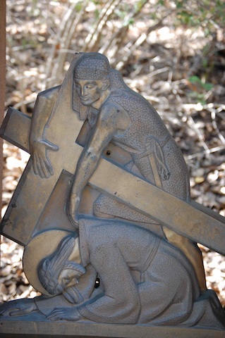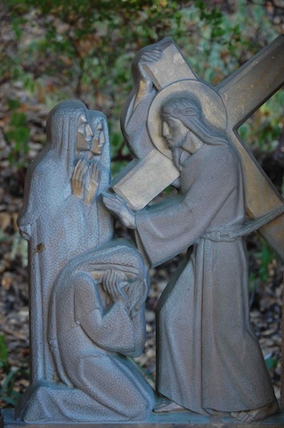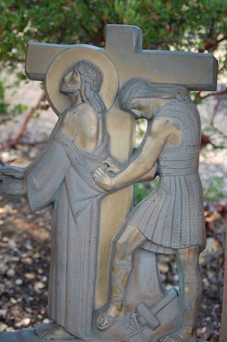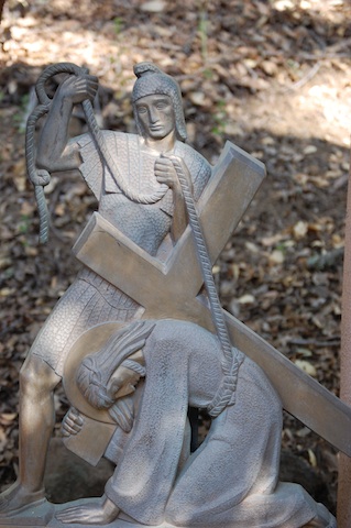 This is the third time Jesus has fallen. A third occasion recalls to mind the three temptations that confronted Jesus at the beginning his ministry and the three times he asks that “if possible (God would) take this cup (speaking of his death) from me but not my will but your will be done.” Might it be that each of these stumbles is yet another temptation thrown at Jesus? An invitation to give up and give in to the pain? To assert his own will, not God’s will be done? A temptation that offers him the opportunity to escape the three nails that will affix him to the cross? Ponder this possibility – what continued to give Jesus the ability and resolve even in this weakened state, to say, ‘not my will but Your will be done’? Spend some time being with Jesus, listening, speaking, being.